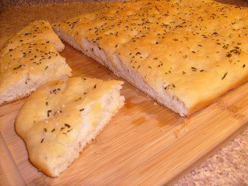 Remove from oven when it turns slightly golden brown. Cut into irregular shapes (I use a scissor). Serve warm with your favorite Extra Virgin Olive Oil and Balsamic for dipping.