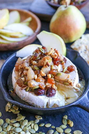 Unwrap the brie cheese and place it in an oven-safe dish (preferably the dish you'll be using for serving). Top with the pear-walnut mixture and bake on the center rack of the oven for 15 to 20 minutes.