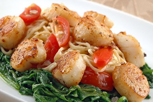 - 1/2 pound sea scallops, sliced 1/4-inch thick