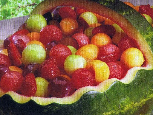 With melon baller, scoop out the flesh from the cantalopes and honeydew melons.