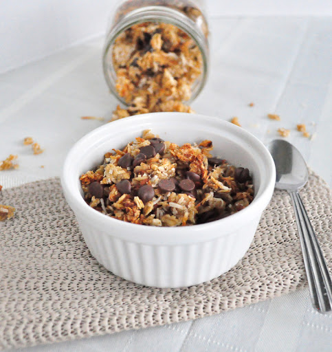 found at - http://mywholefoodlife.com/2013/04/10/almond-joy-granola/