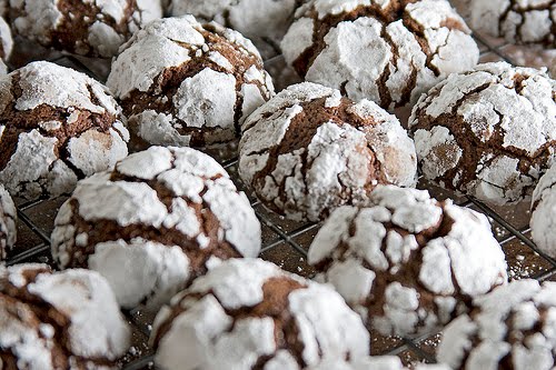 Bake for 10 - 12 minutes or until the cookies are puffed in appearance and firm at the edges. The centres will still be slightly soft. Let the cookies rest on the cookie sheets for 2 minutes. Cookies will fall giving them a cracked appearance. Transfer cookies to a wire rack with a metal spatula and cool completely.