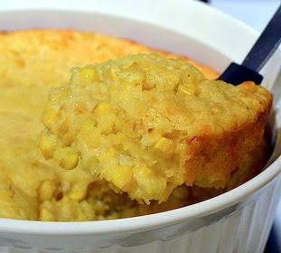 Mix all ingredients together. Grease dish. Pour corn mixture into dish. Bake at 350 degrees for 45 minutes.