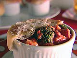 Preheat the oven to 400 degrees F. In a large bowl combine the Tomato Sauce, chicken, broccoli, mozzarella, salt, and pepper. Stir to combine. Divide the chicken mixture evenly between the ramekins. Roll out the pizza dough and cut circles with a pairing knife that are 1-inch wider in diameter than the ramekins. Place the circles of dough over the filled ramekins and press down to seal, making sure to pull the dough over the edge of the ramekin. Brush the top of the pizza dough with olive oil and sprinkle with Parmesan cheese. Cut a small slit in the top of the pizza dough with a pairing knife. Bake until the pizza crust is golden, about 25 minutes. Remove from the oven and let cool slightly before serving.