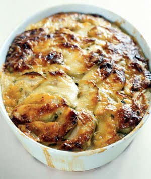 - 2 pounds baking potatoes, peeled and cut into 1/8-inch slices
