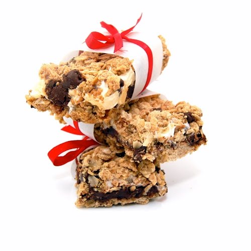 Once the mixture has cooled, evenly sprinkle with the chocolate chips and marshmallows.