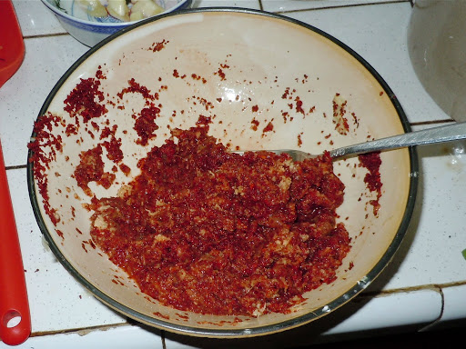 Making kimchi becomes an easy task with a jar of this on hand. In many cases, all you are doing is salting the vegetables, discarding liquid and mixing in a few spoonfuls of this paste. Not just for making kimchi, this paste is also used in flavoring hot pots and soups. In Korea, an anchovy sauce is used as an ingredient to aid in the fermentation process. We use the more widely available Thai or Vietnamese fish sauce.