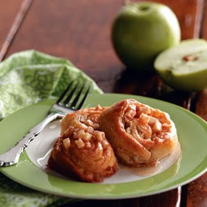 Unroll each tube of crescent roll dough into a rectangle; seal seams and perforations. Combine the apples, pie spice and remaining sugar; sprinkle over dough to within 1 in. of edges. Roll up, jelly-roll style, starting with a long side. Cut into 1-in. rolls; place in a greased 13-in. x 9-in. x 1-in. baking dish. Pour syrup over rolls.