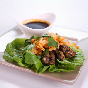 instructions Remove meat from skewers and serve in lettuce cups with Peanut Sauce, shredded carrots and scallions.