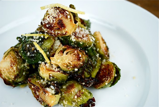 Meanwhile, combine the lemon zest and juice, and the salt. Slowly whisk in the olive oil until the mixture is thickened and emulsified. Toss the warm sprout with the dressing. Check the salt levels and adjust if necessary. Sprinkle on the cheese and serve.