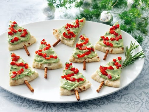 This Holiday appetizer of pita pockets and pretzel sticks with a delicious spread are shaped into adorable Christmas trees.