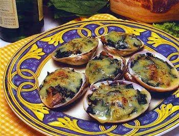 • Coloca en cada concha dos o tres ostiones, cúbrelos con espinacas y
