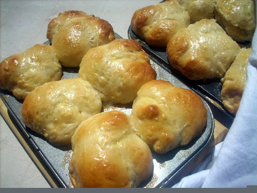 Butter 12 standard muffin cups.Divide dough into 12 equal pieces;cut each piece into thirds. Roll each small piece between palms into ball. Place 3 balls in each prepared cup.