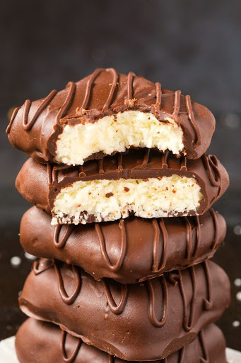 Melt your chocolate chips of choice and individually, dip each coconut bar in the melted chocolate until coated evenly. Repeat until all the bars are evenly coated. Refrigerate until chocolate firms up and enjoy!