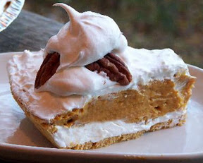 Oh boy, what a treat! It dosen't get any better than this if you are a pumpkin lover like myself! I doubled the cream cheese layer but I don't know why I even bothered. The pumpkin mousse layer is what makes this pie so dreamy! I had admired this recipe for years in magazines during the holiday season and I have no idea why I waited so long to make it! I could eat the top layer by itself by the bowlfuls! Thanks Sackville Girl! Awesome recipe! BTW, I'm thinking that this pie in frozen state would be awesome for summertime!