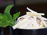 In a medium saucepan over medium heat, combine white chocolate chips and heavy cream. Stir continuously until white chocolate chips have completely melted. Stir in the half-and-half, and vanilla extract. Stir occasionally until heated through. Pour into mugs and top with a dollop of vanilla whipped topping and garnish with mint leaf.