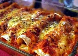 Combine all ingredients except tortillas and mix well. Place 1/2 Cup (heaping) of mixture on each tortilla; roll up. Spread a shallow layer of mixture over bottom of a 13”x9” Pyrex dish. Pleas each rolled tortilla, seam side down, in dish. Top with any remaining mixture. Cover; bake in 350F oven for 20 minutes. If desired, sprinkle with more grated cheddar cheese and bake, uncovered, an additional 5 minutes. Serve