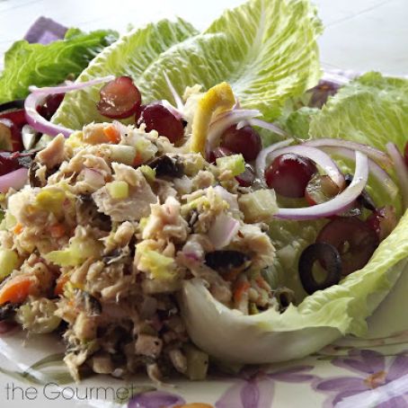 Combine the tuna and all of the ingredients in a bowl. Mix the dressing and add.