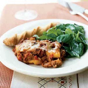 "Sun-dried tomato and garlic polenta is also good in this because the flavors complement the vegetables. The lasagna is delicious with or without the sausage, or you could substitute lean ground beef."