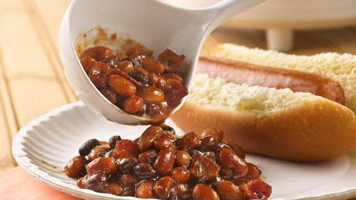 In 3 1/2- to 4-quart slow cooker, mix bacon, onion and remaining ingredients, including reserved liquid. Cover; cook on Low heat setting 3 to 4 hours.