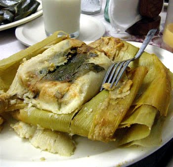 A la hoja de hierbasanta en su parte trasera con un cuchillo de mesa la extendemos uniformemente la masa, sobre ello tambien con el cuchillo le untamos los frijoles, enrollamos la hoja empezando por la punta y los vamos colocando a cada uno sobre una hoja de totomoste previamente remojada y lavada para ponerlos a cocer de preferencia a vapor. El agua debe llevar un puñado de sal, si no los cosemos a vapor debemos cocerlos en poca agua también esta con un poquito de sal. Sirvance calientes acompañados de una buena taza de café también pueden servirse al otro día de haberlos hechos refritos en la misma grasa que ellos soltaran al colocarlos en la lumbre en un sartén tendido.