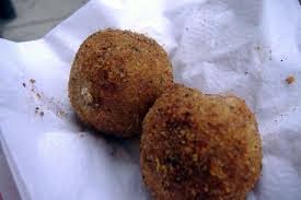 When ready to cook, place oil in deep fryer and let oil get hot, 360 degrees. Drop balls, a few at a time, into hot oil and fry until golden brown. Remove with slotted spoon and drain on paper towel.