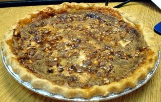 Heat oven to 350 degrees. Mix together butter, syrup, sugar, salt, eggs, and vanilla extract. Whisk until smooth.