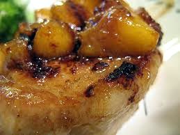 A pork loin recipe with peaches, soy sauce, honey, and seasonings.