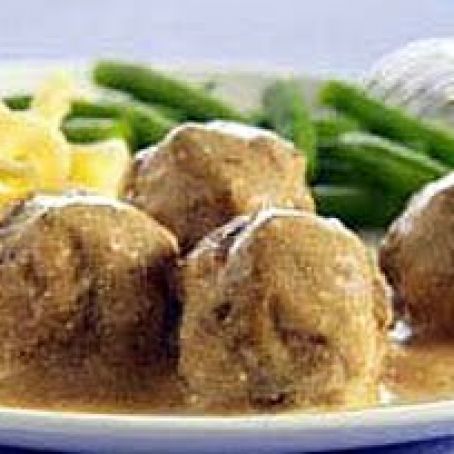 MIX beef gravy and sour cream in large saucepan. Add meatballs; mix lightly. Cook on low heat 5 min. or until sauce is heated through, stirring occasionally.