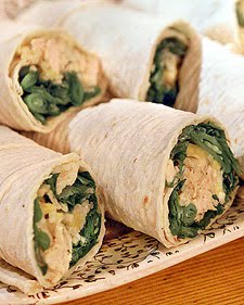 Add jicama and mango to chicken. Toss to combine. Season with salt and pepper. Cover each lavash with arugula mixture. Divide chicken salad between lavash. Roll up to enclose filling. Cut each lavash in half on the diagonal, and serve.