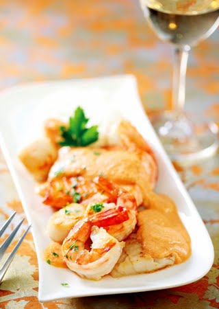 5. Arrange one piece of the salmon, one piece of the haddock, five shrimp and three scallops on a plate with your favourite rice or potato and ladle the coconut curry overtop.