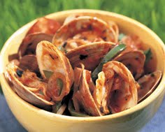 3. Spoon the sauce into a cataplana, or sauté pan. Add clams, and push down into sauce. Bring sauce to simmer on medium heat, cover pan tightly and cook for 5 minutes. Open pan, stir in parsley and coriander, re-cover and cook gently for another 5 to 10 minutes or until clams open. Bring pan to table and serve from pan.