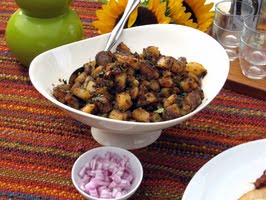 - * 3 large Idaho potatoes, skin on, cut into 6ths, then chopped