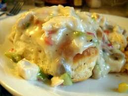 To serve, arrange 2 biscuit halves on each of 4 large plates. Spoon 1/4 cup of the sauce over each half and serve immediately.