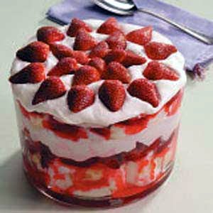 Whip cream and spread on top of dessert. Cut into 15 squares. Serve with garnish of fresh strawberries.