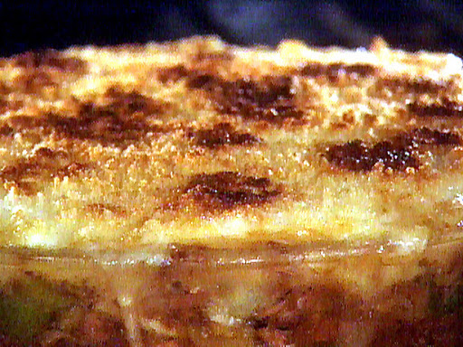 Sprinkle the top with the bread crumbs and the Parmesan. Dot the top with butter. Bake for 45 minutes on the top shelf of the oven. Raise the oven temperature to broil and broil just until the crumbs are browned, about 1 minute. Serve.