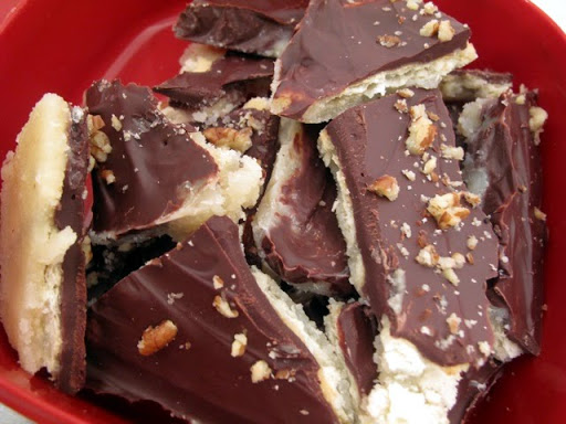 Chill in fridge until set up.. remove from sheet by breaking into pieces.