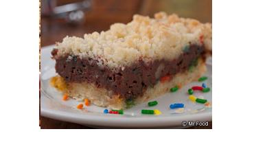 Press half of the crumb mixture into an ungreased 9" x 13" baking pan. Spread the chocolate mixture over the crumb mixture. Top with the remaining crumb mixture. Bake for 35 to 40 minutes or until golden.