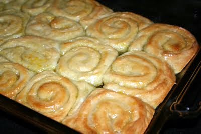 In a small bowl, dissolve yeast in water. In a large mixing bowl, mix milk, shortening, sugar, salt and egg. Add yeast mixture and blend. Stir in enough flour to form a soft dough. Knead on a lightly floured surface until smooth and elastic, about 6-8 minutes. Place in a greased bowl, turning once to grease top. Cover and let rise in a warm place until doubled, about 1 hour. Punch dough down; divide in half. Roll each half into a 15-in. x 10-in. rectangle. Mix filling ingredients until smooth. Spread half the filling on each rectangle. Roll up, jelly-roll style, starting with a long end. Cut each into 15 rolls. Place in two greased 11-in x 13-in. baking pans. Cover and let rise until doubled, about 45 minutes. Bake at 375 degrees F for 20-25 minutes or until lightly browned. Mix glaze ingredients; spread over warm rolls