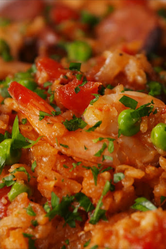 Remove lid and stir in shrimp and frozen peas. Cover and cook until shrimp is pink, 20 minutes.