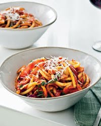 Add the pasta to the sauce along with the parsley and the reserved cooking water and stir over moderately high heat until the pasta is evenly coated, 2 minutes. Serve the pasta in bowls, passing the cheese at the table.