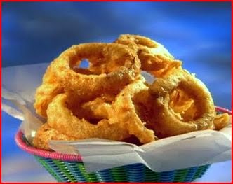 Cut onions 1/2-inch thick, remove dark exterior of onions, separate into rings and soak in buttermilk for 1 hour.