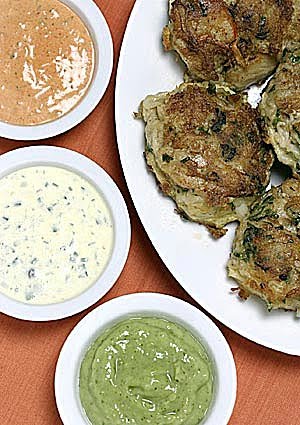 3. Shape the mixture into eight fat ball-like cakes. (They will flatten slightly during cooking.) Place them on a platter or a baking sheet lined with wax paper. Drape a second sheet of wax paper over the top. Refrigerate for 1 hour.