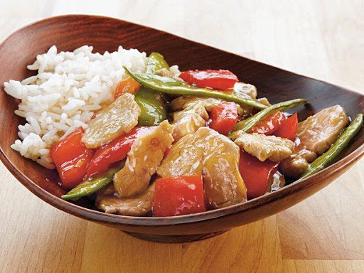 1 Serving (1 Cup Pork Mixture and 1/2 Cup Rice) Calories320 ( Calories from Fat50), Total Fat6g (Saturated Fat1 1/2g, Trans Fat0g ), Cholesterol50mg Sodium2140mg Total Carbohydrate42g (Dietary Fiber2g Sugars15g ), Protein25g