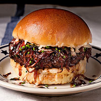 - 2 pounds ground meat (ask your butcher to grind 1 lb. sirloin, 1/2 lb. rib-eye, 1/2 lb. bacon)