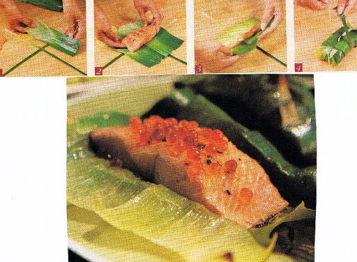 Tear leek outer layers lengthwise into strips about 1/4 inch wide. Prepare wrappers and wrap salmon. Cross two leek strip. Unfold leek tops and lay flat, overlapping to make a rectangle. Center a salmon fillet on a leek base slightly wider than the length of the fish. Fold leek greens over fish to enclose. Tie packet with leek strips to secure. Repeat to wrap remaining salmon.