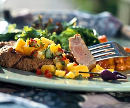 This tomato, fruit, and avocado salsa is a great topper for grilled fish steaks or chicken pieces. Try it with peaches instead of apricots
