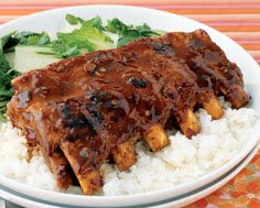 5. Preheat the barbecue on medium-high heat. Remove ribs from oven and brush both sides with sauce. Grill 3 to5 minutes per side, basting occasionally with sauce. Transfer ribs to a board and let rest 5 minutes. Cut each rack into 2 sections and serve with stir-fried Chinese broccoli and steamed white rice.