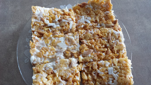 Cocount and almonds may be toasted in oven prior to mixing if desired.