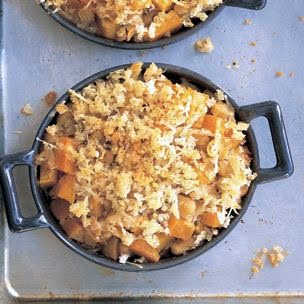 Cover and bake until the pumpkin is tender, about 1 hour. In a bowl, stir together the bread crumbs, cheese and the remaining 1 Tbs. olive oil. Uncover the cassoulet (or, if desired, transfer to individual ovenproof serving dishes) and sprinkle the bread crumb mixture evenly over the top. Return the cassoulet to the oven and bake, uncovered, until the bread crumbs are browned, 10 to 15 minutes more. Serves 4.